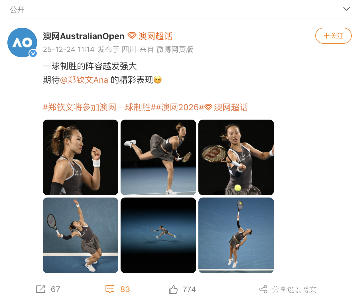 此前,澳网官方陆续公开了参加本届“一球制胜”挑战赛的球员名单,阿尔卡拉斯、阿利亚西姆、梅德韦杰夫、克耶高斯、辛纳、大坂直美、鲍里妮、高芙、斯瓦泰克等知名球员都将参赛。南都记者留意到,在去年12月24日,澳网官方更新了参加本届“一球制胜大满贯”赛事的球员名单,中国球员郑钦文确认参加。但1月8日,目前世界排名第24位的郑钦文在个人社交账号宣布,退出2026年澳大利亚网球公开赛,是否会继续参加“一球制胜”挑战赛,目前还是未知数。